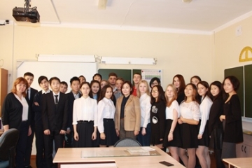 Ученики 9 «б» класса Городской классической гимназии (классный руководитель Л.А.Бобинова) встретились с доверенным лицом Президента РФ В.Путина, народным депутатом Якутии, директором благотворительного фонда «Праздник жизни», сопредседателем Регионального отделения Общероссийского народного фронта в РС(Я) Аленой Атласовой.