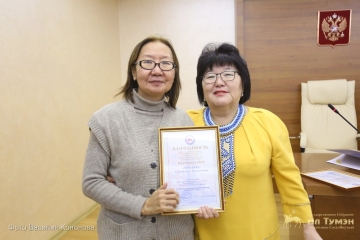 В благодарность за принятие закона о кочевой семье Елена Голомарёва вручила Почётные грамоты постоянного комитета его авторам Александру Подголову, Саргылане Гоголевой, Александру Дудникову, а также тем, кто работал над его принятием в окончательном чтении: активистам Ассоциации коренных малочисленных народов Севера Августе Марфусаловой, Марии Погодаевой, научному сотруднику Института гуманитарных исследований и проблем малочисленных народов Севера Татьяне Константиновой.