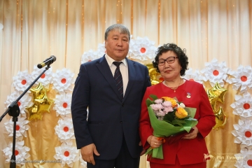 Үөрэх эйгэтигэр өр сыллаах айымньылаах үлэтин, кылаатын иһин Саха Өрөспүүбүлүкэтин үтүөлээх учуутала үрдүк ааты Александр Жирков алын сүһүөх кылаас учуутала Евдокия Ноговицынаҕа дохсун ытыс тыаһыгар арыаллатан туттарда.