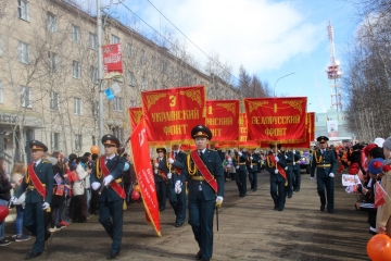 Затем жители города приняли массовое участие в акции «Бессмертный полк». Портреты своих родственников пронесли по городу дети, внуки и правнуки героев войны. Главным событием дня стал торжественный митинг и минута молчания на площади 30-летия Победы. Перед ветеранами войны и трудового фронта торжественным маршем прошли победители районного конкурса строя и песни – кадеты Чернышевской кадетской школы им. Героя России, генерала Трошева, а также учащиеся школ № 12 и 26. Участников митинга поздравили с Днем Победы 1-ый заместитель главы районной администрации Дмитрий Ситнянский, и.о. главы города Мирного Клим Антонов, первый вице-президент АК «АЛРОСА» Игорь Соболев, председатель Совета ветеранов Николай Кулажин, учащийся политехнического лицея Данил Стеблецов