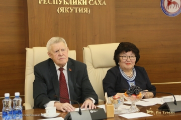 Ил Түмэн мунньахтыыр саалатыгар бэрэссэдээтэли солбуйааччы Виктор Губарев, хотугу аҕыйах ахсааннаах төрүт норуоттар боппуруостарыгар уонна Арктика дьыалаларыгар сис кэмитиэт бэрэссэдээтэлэ, парламентарий дьахталлар общественнай-политическай кулууптарын салайааччыта Елена Голомарева депутат дьахталлары кытары көрүстүлэр.