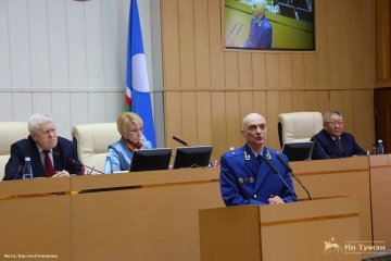 Далее с докладом выступил Глава Якутии Егор Борисов. Прежде всего, Егор Афанасьевич выразил благодарность действующему Прокурору Якутии Анатолию Подласенко. «Он 10 лет очень ответственно проработал у нас, вёл очень конструктивную работу. Хотел бы поблагодарить его за деятельность по сохранению стабильности в республике в области законотворчества, наведения правопорядка, вопросов выплаты заработной платы, повышения ответственности по противопожарной деятельности», - сказал Глава региона.
