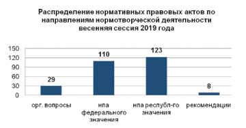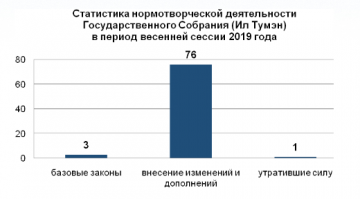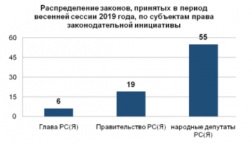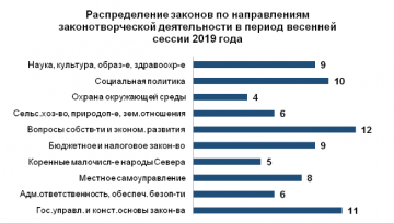 В период весенней сессии 2019 года Государственным Собранием (Ил Тумэн) рассмотрен 81 проект федеральных законов, поддержано 6 законодательных инициатив и 18 обращений законодательных органов субъектов Российской Федерации.