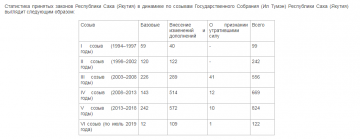 В сфере государственного управления и конституционных основ законодательства Республики Саха (Якутия) принято 34 нормативных правовых акта, из них 11 законов.