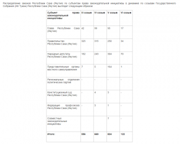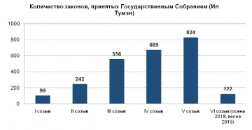 По состоянию на июль 2019 года на рассмотрении Государственной Думы находится 5 законодательных инициатив Государственного Собрания (Ил Тумэн).