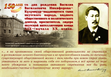 Общественнай уонна политическай деятель, учуонай, эрэдээктэр, публицист, сахалартан бастакы драматург Василий Васильевич Никифоров-Күлүмнүүр олоҕун уонна үлэтин биир бастакынан чинчийбит суруйааччы, суруналыыс Ираида Клиорина архыып матырыйаалларынан таҥан оҥорбут, ытык киһибит олоҕун уонна үлэтин туһунан хронологиятыттан быһа тардан бэчээттиибит.