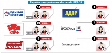 Интересно партийно-гендерное распределение. Львиная доля – 8 женщин-парламентариев сосредоточено внутри «Единой России», лишь по одной даме-депутату будет теперь в прайдах, простите, фракциях КПРФ и Справедливая Россия. В ЛДПР состав полностью брутальный. И, очевидно, Мария Христофорова, единолично представляющая «Гражданскую платформу» намерена играть заметную роль в парламенте. К слову, в нынешнем, уходящем в историю созыве активно себя проявила (и одна в поле воин!) Гульсум Бейсембаева, у которой и название партии – «За женщин России» — говорит само за себя.