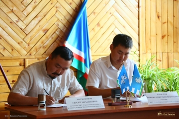 Бу күн Уус Алдан уонна Мэҥэ Хаҥалас улуустарын култуураҕа управлениеларын салайааччылара Иннокентий Аммосов уонна Сергей Холмогоров бииргэ үлэлэһэргэ сөбүлэһии түһэристилэр. Икки улуус култууратын историятын, Д.М.Говоров-Олоҥхоһут Миитэрэй уонна А.П.Петров олохторун, айар үлэлэрин кэпсиир быыстапкалары туруордулар.