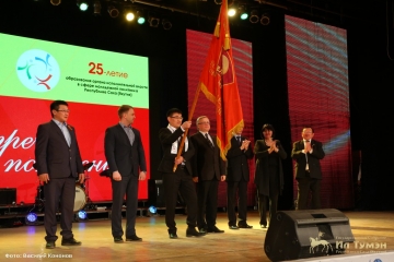 Торжественная часть началась с церемонии передачи Знамени Ленинского комсомола. Главный атрибут комсомольского движения внесли его ветераны - лауреат премии Ленинского комсомола 1985 года, Кавалер знака «Шахтерская слава» II и III степени Александр Ворошилов, лауреат премии комсомола Якутии 1985 года, кавалер ордена «Полярная звезда» Павел Шарин, первый секретарь Чурапчинского райкома ВЛКСМ с 1986 по 1988 год, делегат XX Съезда ВЛКСМ Иван Макаров, которые передали знамя второму секретарю Якутского обкома ВЛКСМ, первому руководителю государственного органа исполнительной власти Республики Саха (Якутия) по молодежной политике с 1991-1993 год Александру Власову и лидерам нынешнего молодежного движения - народному депутату Государственного Собрания (Ил Тумэн) Республики Саха (Якутия) Александру Сусоеву, начальнику Управления молодежи и семейной политики Окружной Администрации города Якутска Виктору Говорову, начальнику Управления по делам молодежи и семейной политике администрации муниципального района «Мегино-Кангаласский улус» Константину Захарову.