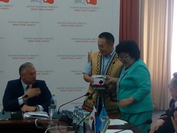 Елена Христофоровна, от имени Председателя Государственного Собрания (Ил Тумэн) Республики Саха (Якутия) Александра Жиркова, вручила Благодарственное письмо председателю Совета эвенкийского народа Российской Федерации Виктору Гаюльскому.
