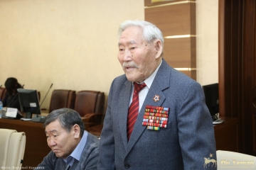 В начале встречи слово предоставили 95-летнему участнику Великой Отечественной войны, уроженцу села Акана, учителю, политологу, партийному работнику, полковнику в отставке и заслуженному работнику народного хозяйства Республики Саха (Якутия) Афанасию Николаеву. Афанасий Иннокентьевич рассказал, как проходил службу в Забайкальском военном округе. После окончания курсов снайперов был направлен в часть, дислоцированную около границы с Китаем. Как разведчик, участвовал в выявлении огневых точек врага при штурме Хайларского укрепрайона. Награжден орденом Великой Отечественной войны II степени, медалью «За победу над Японией».
