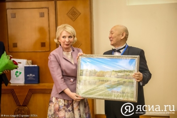 Елена Голомарева передала поздравления от жителей Оленекского улуса и выразила признательность за поддержку юбиляра в принятии базовых законов по вопросам коренных малочисленных народов.