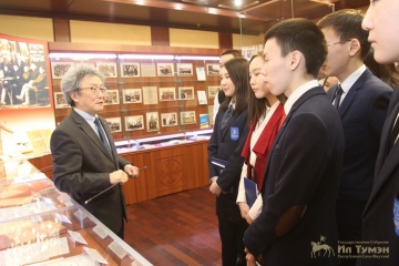 Үөрэнээччилэр бу кыһын аһыллыбыт Саха сирин парламенын историятын музейыгар сылдьан историческай докумуоннары – Саха АССР үлэһит дьонун бырааптарын, эбээһинэстэрин Декларациятын, Саха АССР туһунан ВЦИК президиумун уурааҕын, Саха сирин Сэбиэттэрин тэрийэр бастакы сийиэс боротокуолун, Саха АССР Төрүт сокуонун, сэдэх хаартыскалары, наҕараадалары көрдүлэр. Саха Өрөспүүбүлүкэтигэр судаарыстыбаннас историятын, парламентаризм олохтонуутун туһунан Ил Түмэн Бэрэссэдээтэлин сүбэһитэ Сергей Васильев кэпсээтэ.
