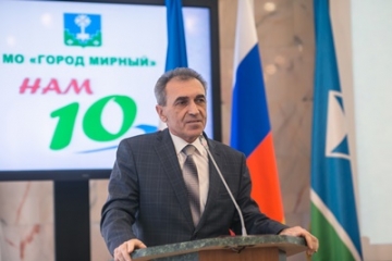 А.А.Панов вручил главе города Приветственный адрес от Главы Республики Саха (Якутия) Е.А.Борисова с наилучшими пожеланиями городу и горожанам. В.В.Сапсай отметил в своем поздравлении, что город Мирный по праву считается одним из лучших муниципальных образований республики и пожелал не сдавать позиций, показывать пример другим поселениям.