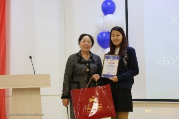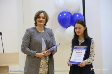 Народный депутат вручила специальный приз в номинации «Лучшее эссе на тему: историческое значение образования Якутской Автономной Советской Социалистической Республики для народов Якутии» ученице 10 класса Якутской городской национальной гимназии г. Якутска Доре Дьячковской.