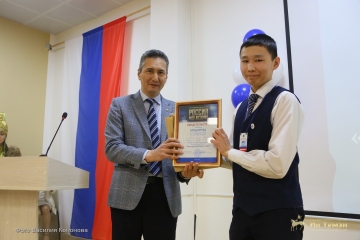 Помощник главы Усть-Алданского улуса Петр Бурнашев поздравил от имени главы, администрации, жителей улуса с завершением XII республиканского конкурса «Будущий дипломат» и вручил специальный приз от администрации улуса ученику 11 класса Дюпсюнской средней школы Усть-Алданского улуса Дмитрию Румянцеву.