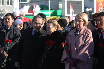 В День государственности республики, 27 сентября 2015 года, в торжественной церемонии возложения цветов к памятнику Платону Алексеевичу Ойунскому приняла участие заместитель Председателя Государственного Собрания (Ил Тумэн) Республики Саха (Якутия) Ольга Балабкина.