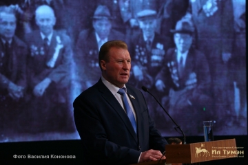 Первый заместитель Председателя Государственного Собрания (Ил Тумэн) республики Анатолий Добрянцев поздравил родственников и земляков Ивана Кульбертинова и отметил, что Иван Николаевич Кульбертинов – славный сын эвенкийского народа, оленевод, промысловик, личность, которая нас восхищает и впечатляет.