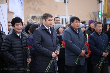 В церемонии возложения цветов к памятнику выдающемуся сыну якутского народа, государственному и политическому деятелю, одному из основателей государственности республики Максиму Кировичу Аммосову приняли участие председатель постоянного комитета Государственного Собрания (Ил Тумэн) Республики Саха (Якутия) по государственному строительству и законодательству АлексейЕремеев, председатель Правительства Республики Саха (Якутия) Евгений Чекин, проректор Северо-Восточного федерального университета имени М.К. Аммосова Михаил Федоров,представители общественности.