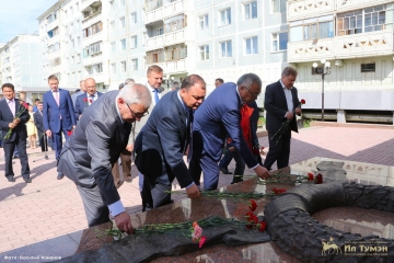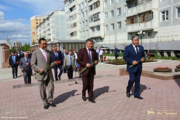 Сенаторы и народные депутаты возложили цветы к мемориальному комплексу «Солдат Туймаады»