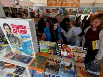 Главная площадь страны снова превратилась в литературную ярмарку. В этом году книжный фестиваль, который продлится до 6 июня, приурочили ко дню рождения Александра Пушкина, Дню русского языка и Году кино. Запланировано грандиозное количество мероприятий — всего около 400, столько же российских издательств из Москвы и Санкт-Петербурга представят свои новинки, а почти 80 региональных привезут более 100 тысяч книг. Все будут продаваться по издательской цене, ведь денег за аренду тут никто не берёт.