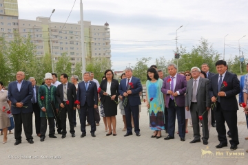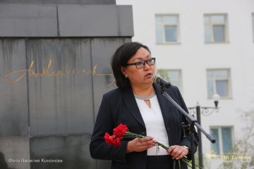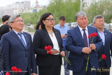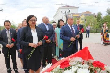 Мероприятие завершилось возложением цветов памятнику М.К. Аммосову.