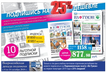 Редакция газеты «Ил Тумэн» сообщает о начале акции «Добрая подписка». Также в период проведения Всероссийской декады подписки до 14 октября 2018 года вы можете оформить подписку по льготной цене.