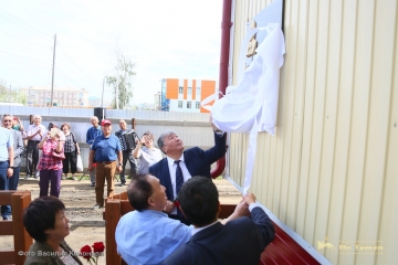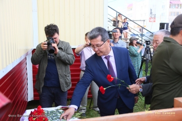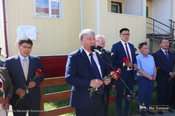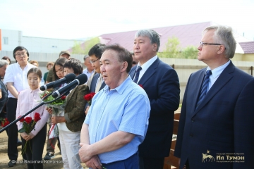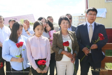 Председатель Государственного Собрания (Ил Тумэн) Республики Саха (Якутия) Александр Жирков, вдова Александра Мигалкина Надежда Мигалкина, сын Александра Мигалкина, заместитель министра образования и науки Республики Саха (Якутия) Василий Мигалкин, старший брат Александра Мигалкина – народный поэт Якутии Иван Мигалкин торжественно сняли покров с памятного знака.