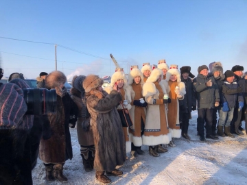 По традиции гостеприимства народа саха дорогих гостей встречали якутским кумысом и оладьями. Церемонию освящения и благословления провел уважаемый представитель спортивной общественности улуса, заслуженный работник физической культуры и спорта Республики Саха (Якутия), почетный гражданин Чурапчинского улуса, известный запевала осуохая Семен Морфунов.