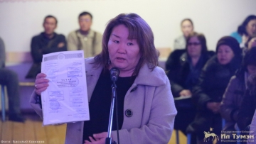 В защиту действующих депутатов выступила председатель контрольно-счётной палаты Хангаласского улуса Саргылана Афанасьева. Она отметила, что ведомством ведётся контроль и экспертиза проектов бюджета всех муниципалитетов района, поэтому с 2014 года представители контрольно-счётного органа посещают заседания наслежных Советов депутатов. «Хочу отметить, что депутаты для наслежного уровня достаточно грамотные, любознательные, интересуются формированием бюджета. При моём личном присутствии на сессиях они задавали аргументированные и обоснованные вопросы, том числе, по бюджету наслега. Так, обращают внимание и спрашивают, если в раздаточных материалах депутатов фигурируют другие цифры. Поэтому между ними (главой и депутатами) происходит недоверие. Нельзя говорить только о вине депутатов, о том, что они срывают сессии, это неправильная позиция. При принятии решения прошу учитывать все моменты», - отметила она. Также в защиту депутатов выступила Анна Фёдоровна Петрова. «Мы сами выбирали этих депутатов, они работают, депутаты грамотные, знают законы. Главе надо найти с ними общий язык и вести совместную работу», - сказала она.