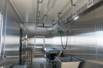 Для того чтобы опробовать новенький цех был привезен один олень. Все присутствующие могли увидеть, как забивается олень и как работает модульный цех по переработке оленеводческой продукции. Большой модульный цех состоит из нескольких подцехов: в первом цехе идет непосредственно разрез шкуры, во втором перерабатывают внутренности, также есть и отдельный цех для полуфабрикатов, и цех, где тушу замораживают в большой морозильной комнате.