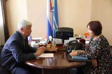 15 октября состоялась рабочая встреча Председателя Верховного Хурала (парламента) Республики Тыва Даваа Кан-оола Тимуровича с кандидатом педагогических наук, ведущим научным сотрудником сектора фольклора Тувинского института гуманитарных исследований Маргаритой Базыр-ооловной Кунгаа.