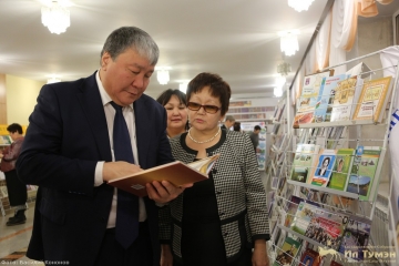 В фойе первого этажа Театра оперы и балета им. Д.К. Сивцева-Суоруна Омолоона работники Национальной библиотеки Якутии организовали выставку книг «Дружба литератур – дружба народов», а также выставку изданий муниципальных образований в Год литературы «Книжная Якутия», которые посетил спикер якутского парламента Александр Жирков.