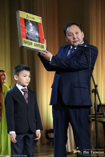 Глава Якутии вручил государственные награды Российской Федерации и Республики Саха (Якутия). Указом Президента Российской Федерации Владимира Путина за большие заслуги в развитии отечественной культуры и искусства, многолетнюю плодотворную деятельность медалью Пушкина народный поэт республики, председатель правления Союза писателей Якутии, советник Ил Дархана Наталья Харлампьева. Указом Главы Якутии за выдающиеся произведения в области изучения языка классиков якутской художественной литературы, героического эпоса Олонхо, большой личный вклад в подготовку высококвалифицированных кадров, создание якутской лексикографической научной школы Государственная премия Республики Саха (Якутия) имени П.А. Ойунского за 2015 год присуждена главному научному сотруднику сектора лексикологии Института гуманитарных исследований и проблем малочисленных народов Севера Сибирского отделения Российской академии наук Петру Слепцову. Почётные звания «Заслуженный работник культуры Республики Саха (Якутия)» присвоены главному редактору республиканского литературно-художественного и общественно-политического журнала «Полярная звезда» Владиславу Доллонову, профессиональному писателю, члену Союза писателей России, кандидату филологических наук Ольге Пашкевич. За значительный вклад в укрепление культурных и литературных связей, многолетнюю творческую и плодотворную деятельность Почётным знаком республики «За укрепление мира и дружбы народов» награждён поэт, организатор фестиваля славянской поэзии «Поющие письмена», составитель и издатель «Антологии якутской поэзии» Сергей Гловюк. Также вручены Благодарственные письма Главы Республики Саха (Якутия).