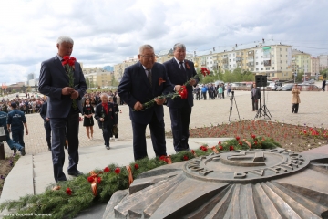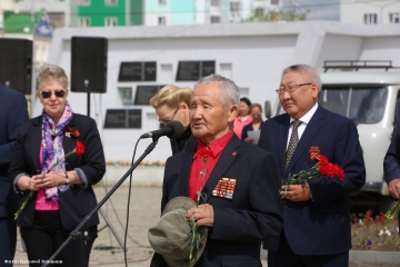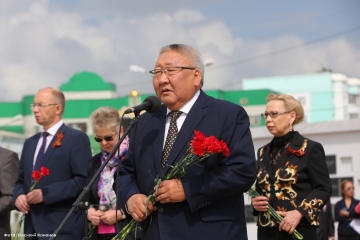 В траурном митинге и церемонии возложения цветов к монументу "Воинам - победителям" на площади Победы города Якутска приняли участие Глава Республики Саха (Якутия) Егор Борисов, Председатель Государственного Собрания (Ил Тумэн) Республики Саха (Якутия) Александр Жирков, Председатель Верховного Хурала (парламента) Республики Тыва Кан-оол Даваа, члены Правительства Якутии, народные депутаты республики, представители министерств и ведомств, руководство Окружной администрации столицы республики, руководители федеральных структур, ветераны Великой Отечественной войны и тыла, представители политических партий, общественных объединений молодёжи, учащиеся школ, жители и гости Якутска.