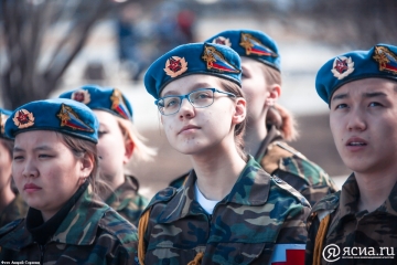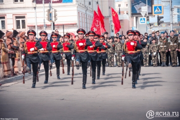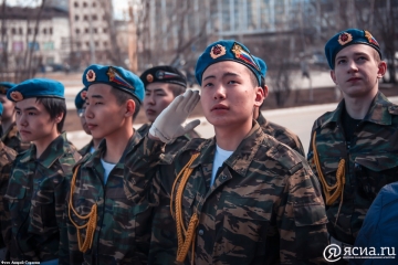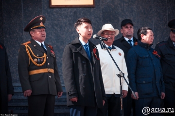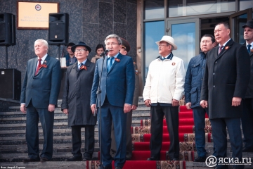 Символ Знамени Победы под звуки военного марша внесла Знамённая группа Военного комиссариата Республики Саха (Якутия). Церемонией командовал военный комиссар Республики Саха (Якутия) Артын Демир-Оол.