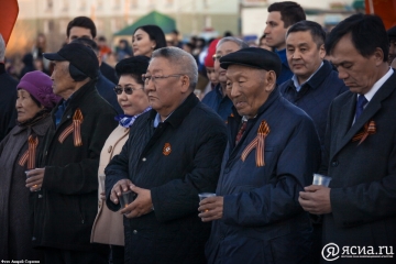 В своем выступлении Глава Республики Саха (Якутия) Егор Борисов отметил: «Мы сегодня отдаем дань уважения тем, кто принес на алтарь Победы свою жизнь за будущее нашей страны, за будущее Якутии. Страна потеряла около 30 миллионов жизней на полях сражений, в тылу от голода и ран, в фашистских концлагерях. Более 60 тысяч якутян были призваны в ряды Советской Армии, из них более половины остались на полях сражений. Патриотизм, преданность Родине стали залогом Победы».