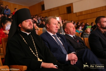 Также к присутствующим со словами поздравлений обратились секретарь Якутского епархиального управления, настоятель Градоякутского Преображенского Кафедрального Собора иеромонах Никандр, студентка третьего курса филологического факультета Северо-Восточного федерального университета имени М.К. Аммосова, победитель Олимпиады талантов в Сочи Елена Иванова.