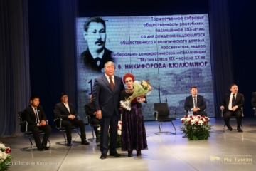 Государственный советник Республики Саха (Якутия) Андрей Борисов отметил, что В.В. Никифоров-Кюлюмнюр был «интеллектуально, духовно и политически зрелой личностью». «Первый спектакль, который он поставил для зрителей, это спектакль по эпосу олонхо. Как он увидел, что в олонхо есть театр?» – восхитился масштабам мышления В.В. Никифорова Андрей Борисов. Глава Усть-Алданского улуса Алексей Федотов рассказал о мероприятиях, проводимых на малой родине просветителя в Усть-Алданском улусе. Кроме того, вручил ежегодные стипендии имени В.В. Никифорова-Кюлюмнюр для студентов-гуманитариев Северо-Восточного федерального университета имени М.К. Аммосова.
