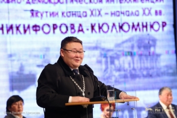 Аплодисментами присутствующих встречены слова докладчика о том, что по запросу республиканского организационного комитета по подготовке и проведению мероприятий, посвящённых 150-летию со дня рождения В.В. Никифорова-Кюлюмнюр, экспертная комиссия в составе специалистов в области литературоведения и языкознания из Северо-Восточного федерального университета имени М.К. Аммосова 22 ноября этого года вынесла экспертное заключение о необходимости признать В.В. Никифорова наравне с А.Е. Кулаковским, А.И. Софроновым, Н.Д. Неустровым и П.А. Ойунским одним из основоположников якутской художественной литературы.