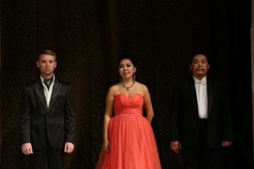 Концертную программу арией Аиды из оперы «Аида» Джузеппе Верди открыла молодая певица, лауреат международного конкурса Прасковья Герасимова. Лауреат Второго Всеукраинского конкурса вокалистов Андрей Кривохата исполнил арию Рудольфо из оперы «Луиза Миллер» Джузеппе Верди, а также арию Вертера из оперы «Вертер» Жюля Массне. Арию Виолетты из оперы «Травиата» Джузеппе Верди на бис исполнила заслуженная артистка республики Феодосия Шахурдина. Арию принцессы де Буйон из оперы «Адриенна Лекуврёр» Франческа Чилеа исполнила заслуженная артистка России, народная артистка Якутии Айталина Адамова.