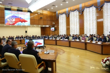 Далее выступил Глава Якутии Егор Борисов. Ил Дархан отметил, что принятие Конституции в 1993 году стало событием исключительной важности, которое позволило объединить страну, прекратить политический и конституционный кризис, тянувшийся на протяжении двух лет. «Мы должны помнить об ответственности перед народом и государством. Принятие Конституции России определило пути развития государства, послужило консолидации власти, общества, граждан. Это событие обеспечило стабильность в стране, позволило сообща решать сложные вопросы взаимодействия всех уровней власти, федерального центра и регионов, защититься от нападок извне. Сегодня Россия встала на ноги, стала государством, которое влияет на мироустройство», - подчеркнул Егор Борисов.