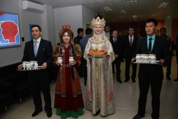 Высоких гостей встречали по традиции русским хлебом с солью и якутским кумысом заместитель Председателя Государственного Собрания (Ил Тумэн) Ольга Балабкина, руководитель Администрации Главы и Правительства Якутии Юрий Куприянов, заместитель Председателя Правительства республики Алексей Дьячковский, руководитель представительства Министерства иностранных дел Российской Федерации в Якутске Николай Дьяконов, министр по федеративным отношениям и внешним связям Республики Саха (Якутия) Владимир Васильев и другие.