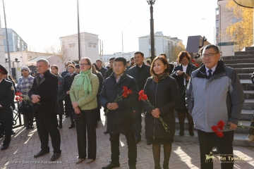 Сегодня в торжественной церемонии возложения цветов к памятнику видному общественно-политическому деятелю Василию Никифорову – Кюлюмнюр приняли участие первый заместитель председателя Госсобрания (Ил Тумэн) РС (Я) Александр Жирков, депутат Государственной Думы Федерального Собрания РФ Галина Данчикова, министр экономики РС (Я) Майя Данилова, президент Совета Ассоциации «Оленеводы Мира» Сергей Харючи, первый заместитель руководителя администрации Главы РС (Я) и Правительства РС (Я) Павел Иванов, председатель Федерации профсоюзов РС (Я) Николай Дегтярев, первый заместитель главы ГО «Город Якутск» Евгений Григорьев, президент Академии наук РС (Я) Игорь Колодезников, первый заместитель главы МР «Усть-Алданский улус (район)» Петр Попов, народные депутаты РС (Я), ветераны Государственного Собрания (Ил Тумэн), члены правительства РС (Я), представители министерств и ведомств республики, родственники Василия Васильевича Никифорова-Кюлюмнюр, представители научных сообществ, члены Молодежного парламента при парламенте республики, студенты СВФУ имени М.К. Аммосова, ЯГСХА и Якутского базового медицинского колледжа, курсанты якутской кадетской школы, учащиеся СОШ №1 г. Якутска, общественность, жители и гости города Якутска.