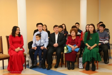 Выступая со словами поздравления, председатель постоянного комитета Госсобрания (Ил Тумэн) по делам семьи, детства, молодёжи, физической культуре и спорту Юрий Баишев отметил, что создание семьи является ответственным и важным шагом. «Вы будет нести ответственность не только друг перед другом, перед вашими будущими детьми, но и перед обществом», ­– сказал народный депутат республики.