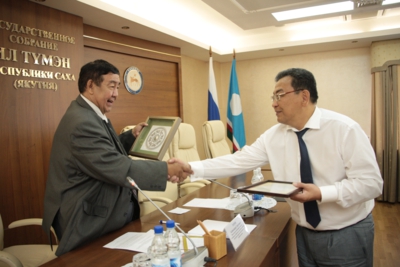 Министр финансов Якутии Валерий Жондоров также выразил благодарность всему постоянному комитету Ил Тумэна во главе с Александром Уаровым и вручил председателю комитета Благодарственное письмо от имени министерства финансов Якутии.