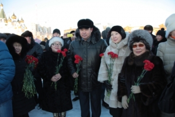 Миитиҥҥэ кэлбит дьону Саха Республикатын Президенин уонна Правительствотын дьаһалтатын салайааччыта Юрий Куприянов республика үрдүкү салалтатын аатыттан эҕэрдэ тылынан аста: “Бүгүҥҥү бырааһынньыгы биһиги Саха сирэ Россия састаабыгар киирбитэ 375 сылыгар аналлаах пааматынньык аттыгар көрсөрбүт улахан суолталаах. Бу – аныгы Россия биир сомоҕо уонна түмсүүлээх буолуутун көрдөрөр. Республика бары олохтоохторун эҕэрдэлээн туран, эһиги хас биирдиигит чугас дьоҥҥутун, доҕотторгутун амарах сыһыаҥҥытынан угуттааҥ, сырдыгынан сыдьаайыҥ диэн баҕа санаабын тиэрдэбин”.