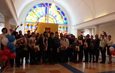 После слов поздравления от вице-спикера парламента республики, ребята произнесли торжественную клятву. Затем из рук народного депутата новым гражданам была вручена Конституция России.