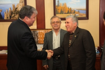 Кулун тутар 9 күнүгэр Аан дойду аатырбыт бөҕөстөрүн, 70-с сыллар саҥаларыгар тустуу көбүөрүгэр биһиги Роман Дмитриевпыт сүрүн утарсааччыларын Ибрагим (Эбрахим) Джавадины уонна Огнян Николовы Ил Түмэн спикерэ Александр Жирков бэйэтин үлэлиир кабинетыгар истиҥник көрүстэ. Көрсүһүүгэ Таджикистан Республикатын көҥүл тустууга Федерациятын вице-президенэ Рустам Мурадов, республика парламенын депутаттара Олимпийскай чемпион, «Триумф» спортивнай бэлэмнээһин киинин директора Павел Пинигин, дьиэ кэргэн, оҕо, ыччат дьыалаларыгар, физическэй культураҕа, спортка Ил Түмэн сис кэмитиэтин председателэ Юрий Баишев, Р.М. Дмитриев аатынан Республикатааҕы олимпийскай резервэ орто анал училищетын директора Алексей Филиппов, республика спорка министрин бастакы солбуйааччыта, Олимпийскай оонньуулар боруонса призёрдара Георгий Балакшин кытыннылар.