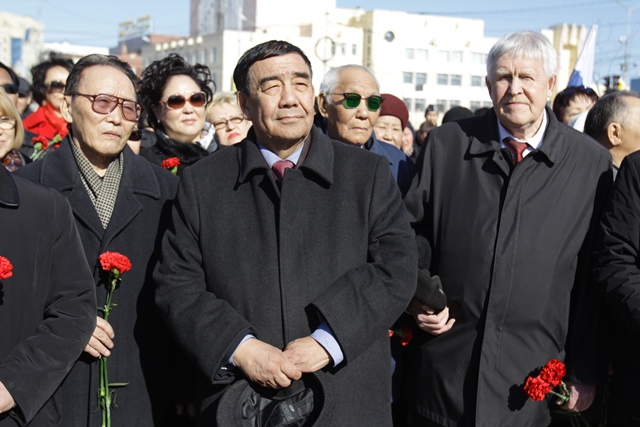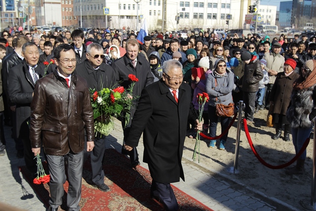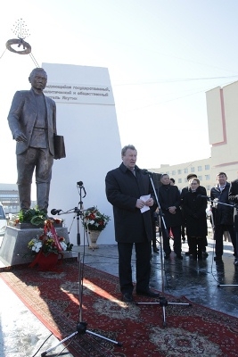 Ил Түмэн спикерин бастакы солбуйааччы Анатолий Добрянцев үөрүүлээх түгэн бары кыттыылаахтарын бырааһынньыгынан итиэннэ Исидор Бараховка скульптурнай композиция аһыллыытынан истиҥник эҕэрдэлээтэ. Саха норуотун уһулуччулаах судаарыстыбаннай деятеллэрин сайдыыга дьулуурдара, утумнаах үлэлэрэ, гражданскай хорсун быһыылара биһиэхэ барыбытыгар итиэннэ кэлэр көлүөнэлэргэ чаҕылхай холобурунан буолалларын бэлиэтээн туран, Анатолий Добрянцев: “ Сырдык аата норуокка өрүү тыыннаах Исидор Никифорович Барахов Саха сирин судаарыстыбаннаһын төрүттээччилэртэн биирдэстэринэн буолбута. Биһиги дойдубут партийнай, общественнай деятелигэр, төрөөбүт сиригэр бэриниилээх уонна норуоттар доҕордоһууларын өрө тутар киһиэхэ өрөспүүбүлүкэбит историятыгар хатыламмат чаҕылхай суолу хаалларар ытык иэс тиксибитэ”, -- диэтэ.
